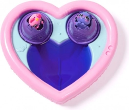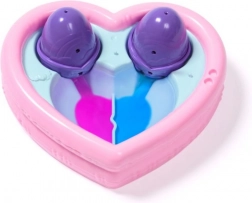 Uronite jaja u srcoliki bazenčić, uklonite krilca i polako ulijevajte vodu – čim obje polovice srca promijene boju, vaši Hatchimals će se izlegnuti. Dodavanjem više vode boje će se spojiti u ljubičastu i stvoriti efektan neonski izgled. Čarobno izlijeganje u vodi s promjenom boje pretvara svaku igru u jedinstveno iskustvo.