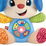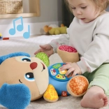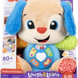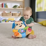Preslatki interaktivni psić FISHER‑PRICE „Uči se i smij!“ s funkcijom višijezičnog učenja donosi svijet slova, brojeva, boja i oblika u dječju igru. Dovoljno je pritisnuti 5 tipki na trbuščiću i zasvijetlit će svjetleće srdašce, pokrenut će se više od 80 zvukova, fraza i pjesmica te će dijete uživati u 3 razine učenja koje rastu s dobi.