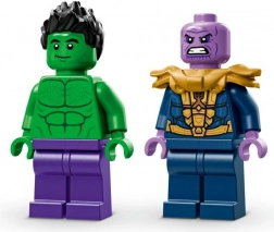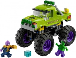 Sastavite herojski monster truck koji je spreman za svaku misiju. Kabina s otvaranjem skriva mjesto za minifiguricu Hulka, golemi kotači i ovješanje s oprugama lako savladavaju teren, a natpis Hulk Smash! daje vozilu prepoznatljiv stil. Tu je i impresivni Thanos s Rukavicom beskonačnosti i Tesseractom za epske okršaje dobra i zla.