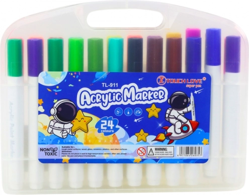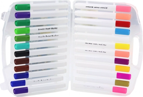 Set akrilnih markera izvrstan je alat za sve koji vole umjetnost, i za djecu i za odrasle. Praktični organizator u obliku prijenosne futrole olakšava pohranu i prenošenje cijelog seta, što ga čini idealnim za korištenje kod kuće, u školi ili na otvorenom.