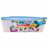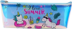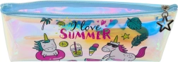Ova očaravajuća pernica donosi ljetnu avanturu ravno u tvoju torbu. Živopisne boje i holografski sjaj čine ovu pernicu modnim dodatkom koji privlači pažnju kamo god je poneseš. Zahvaljujući prozirnoj konstrukciji lako vidiš što je unutra, dok motiv holografskih jednoroga i natpisi 'I love SUMMER' donose radost i maštu.