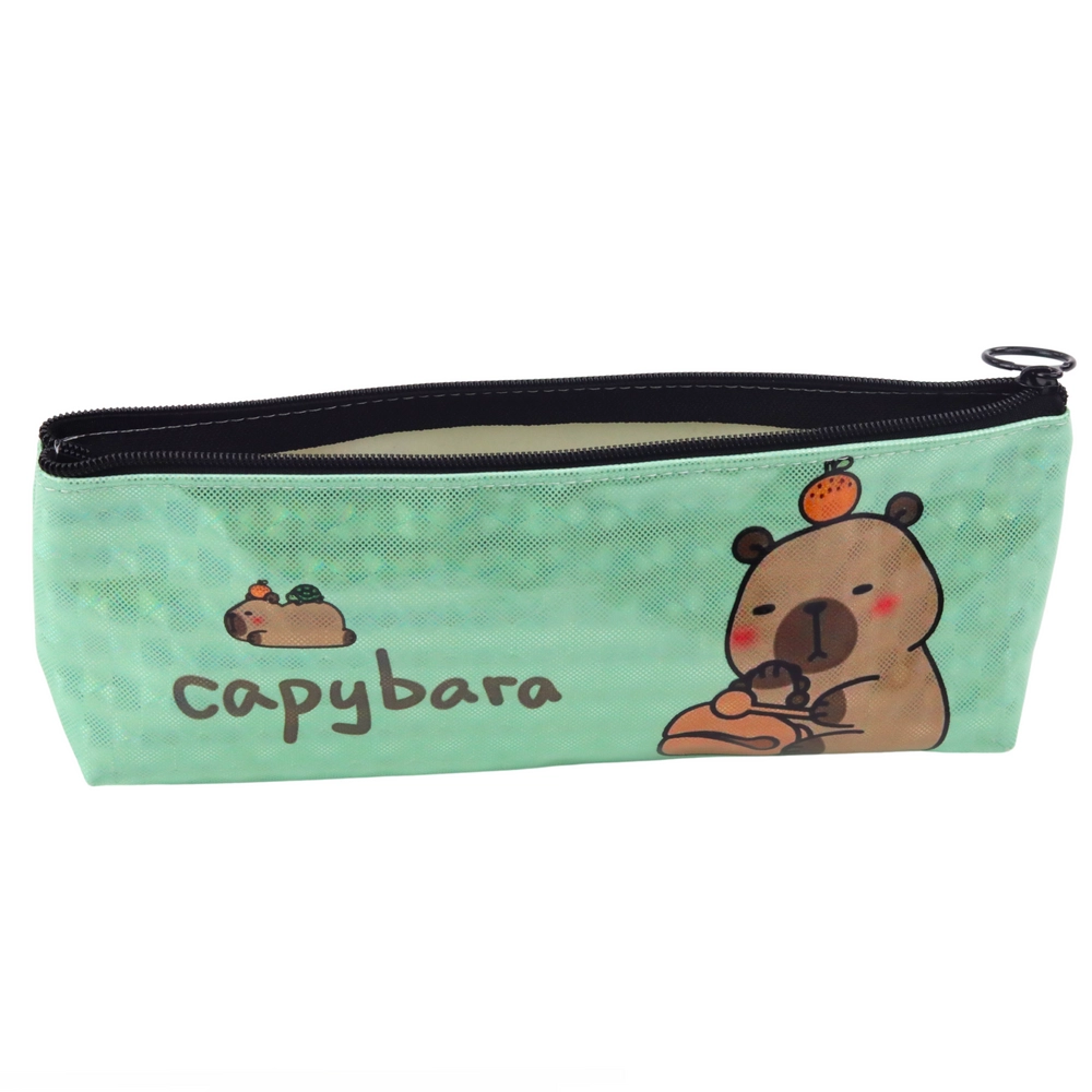 Stilska školska pernica s motivom kapibare u prekrasnoj metalik zelenoj boji idealan je dodatak za svakog ljubitelja životinja. Ova pernica ne ističe se samo modernim izgledom, već i praktičnošću.
