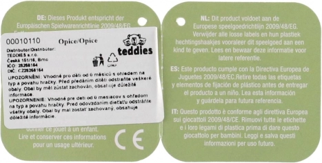 Izvezene oči i osmijeh bez sitnih dijelova osiguravaju prikladnost za bebe 0m+.