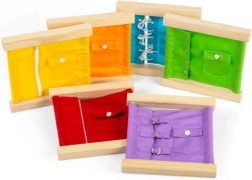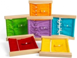 Set od šest Montessori okvira brenda Bigjigs Toys pomaže djeci od 3 godine uvježbavati samostalnost i finu motoriku. Svaki drveni okvir nudi drugačije zakopčavanje – patentni zatvarač, gumbi, vezice, kopče, drukeri i čičak. Izrađeno od FSC certificiranog drva, sigurnih netoksičnih boja, u skladu s europskim normama.