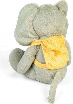Preslatki sivozeleni plišani slon sa žutim ruksakom idealan je pratitelj za igru i spavanje. Mekan je na dodir, pruža osjećaj sigurnosti i potiče emocionalni razvoj djece. Izrađen od recikliranih materijala s GRS certifikatom i ispunjava aktualne europske sigurnosne norme – odličan izbor već od rođenja.