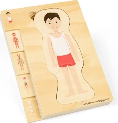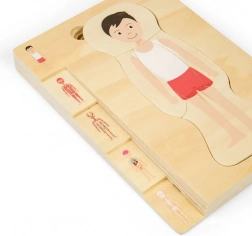Otkrijte ljudsko tijelo kroz igru s ovim kvalitetnim drvenim puzzlama. Zahvaljujući slojevitim dijelovima djeca shvaćaju strukturu tijela od kostura do organa, razvijaju finu motoriku i logičko razmišljanje. Proizvedeno od FSC certificiranog drva, s netoksičnim bojama i u skladu s europskim sigurnosnim standardima.