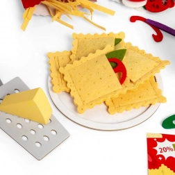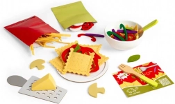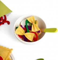 Uz ovaj svestrani set djeca će se zaigrati malih chefova i pripremiti vlastiti tanjur tjestenine. Šareni, mekani filcani sastojci poput tagliatella, ravijola i farfalla upotpunjeni su umakom od rajčice, gljivama, listićima bosiljka te drvenom zdjelicom, tanjurom, dvjema vilicama i ribežom s ploškom parmezana – sve za realističnu kulinarsku zabavu.