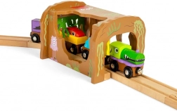Tunel je izrađen od FSC® certificiranog drva, što jamči održivo podrijetlo materijala. Površinska obrada koristi netoksične boje i lakove koji ispunjavaju aktualne europske sigurnosne norme. Zahvaljujući standardnim dimenzijama tunel je lako kompatibilan s popularnim drvenim željezničkim setovima na tržištu.