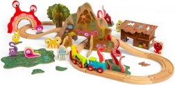 Krenite u monstruoznu avanturu s drvenom željezničkom prugom BIGJIGS RAIL Čudovišta! Set od 50 dijelova donosi lokomotivu s dvama vagonima, tračnice s tunelom i mostom, šarene čudovišne likove, stablo sa životinjicama, močvaru i kolibu. Podržava maštovitu igru, kreativnost, finu motoriku i jezični razvoj. Izrađeno od FSC certificiranog drva i kompatibilno s većinom drvenih željezničkih setova.