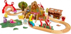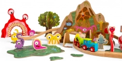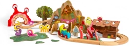 - 50 dijelova: lokomotiva, 2 vagona, tračnice, most, tunel, čudovišta, stablo sa životinjicama, močvara, koliba i dodatni pribor.