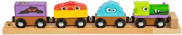 Krenite na jezovitu vožnju s vlakićem Čudovišta od Bigjigs Rail. Set sadrži lokomotivu, tri vagona s uklonjivim teretom, dvije drvene tračnice i završni graničnik. Pogodno za proširenje bilo kojeg drvenog željezničkog sustava i idealno uz set Čudovišta.