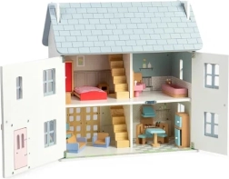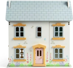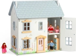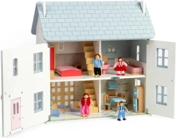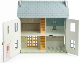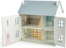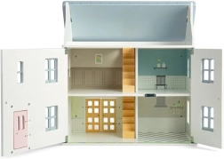 Očaravajuća drvena kućica za lutke u nježnim pastelnim bojama s viktorijanskim detaljima donosi ljetni ugođaj i beskrajnu igru. Nudi 2 kata + tavan, 4 sobe, 2 stubišta i otvarajuću prednju stijenku, prozore i vrata. Izrađena od FSC® certificiranog drva i obojena netoksičnim bojama, potiče maštovitu igru, finu motoriku te jezični i emocionalni razvoj. Namještaj ni lutke nisu uključeni u pakiranje.
