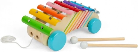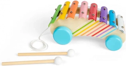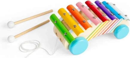 Zahvaljujući kotačićima i uzici djeca rado vuku ksilofon, čime jačaju koordinaciju, ravnotežu i grubu motoriku.