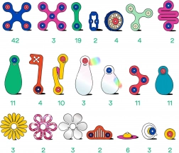 • 150 dijelova u 11 boja uključujući kotače, svjetlucave i prizmatične elemente