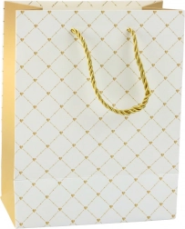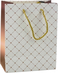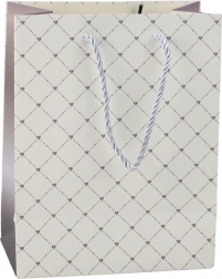 Ova elegantna darovna vrećica idealan je izbor za pakiranje posebnog poklona. Izrađena od visokokvalitetnog papira, krasi je suptilan i moderan uzorak u obliku sitne mrežice sa sjajnim akcentima, koji joj daju jedinstven karakter i eleganciju. Zahvaljujući univerzalnom dizajnu, prikladna je za razne prigode – od rođendana i obljetnica do blagdana i društvenih događanja.