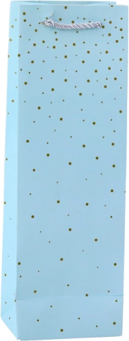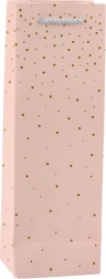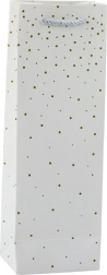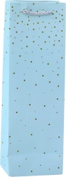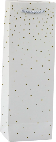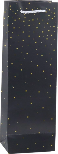 Elegantna papirnata poklon-vrećica za bocu savršen je način za pakiranje napitaka za razne prilike. Izrađena je od kvalitetnog papira i odlikuje se nježnim uzorkom zlatnih točkica koji daje eleganciju i stil.