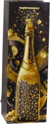 Tražite elegantan način za pakiranje boce vina, šampanjca ili domaćeg likera? Ova poklon-vrećica od kvalitetnog papira ističe se sjajnim zlatnim akcentima i motivom šampanjca, koji poklonu daju dozu posebnosti. Pletene materijalne ručke u zlatnoj boji ugodne su za držanje i osiguravaju sigurno prenošenje.