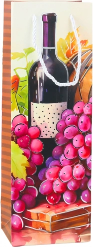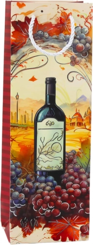 Šareni motivi s vinskim bocama i grožđem daju vrećici elegantan izgled.
