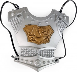 Ovaj veliki viteški set pretvara svako dijete u hrabrog čuvara kraljevstva. Laka konstrukcija i izdržljivo plastično izvođenje osiguravaju jednostavno nošenje i sigurno igranje. Realistični detalji, poput zlatnog zmaja na štitu i oklopu, svakoj bitki daju čar srednjeg vijeka.