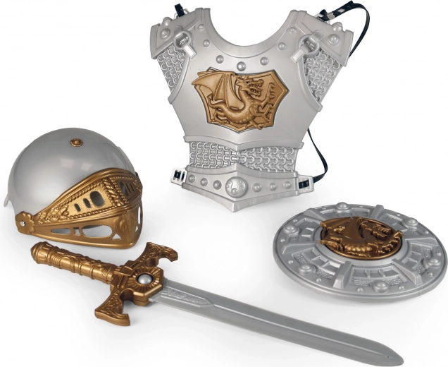 Kaciga, oklop, mač i štit čine cjelovit set s kojim je dijete spremno za svaku avanturu – od karnevala do kućnih bitaka.