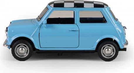 Otkrijte legendarni Mini Cooper u kvalitetnoj izvedbi metal/plastika. Zahvaljujući povratnom mehanizmu dovoljno je navući i pustiti – auto će živahno krenuti naprijed. Detaljna izrada karoserije, kromirani elementi i kockasti uzorak krova naglašavaju kolekcionarski izgled modela.