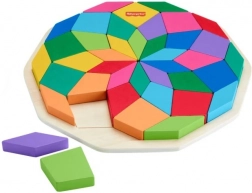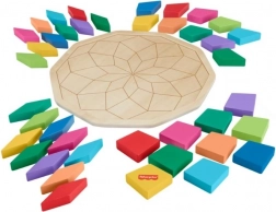 Drvene puzzle Mandala od Fisher-Price idealna su igračka za djecu koja žele naučiti rješavati probleme i razvijati finu motoriku. Sastoji se od 40 šarenih dijelova koji se mogu slagati ili sortirati na posebnoj podlozi s utorima, pomažući stvoriti geometrijski uzorak mandale. Ova šarena slagalica također pomaže razvijati koncentraciju i koordinaciju ruka-oko.