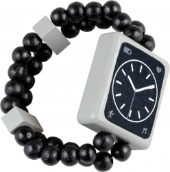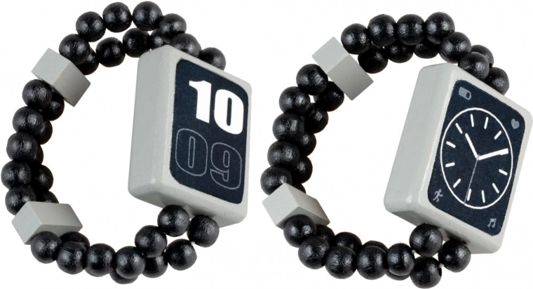 Priredite djeci kreativnu igru i nenametljivo učenje vremena s drvenim dvostranim satom. Jedna strana prikazuje digitalno vrijeme, druga analogni brojčanik s kazaljkama – idealno pomagalo za prve korake u snalaženju s vremenom. Lagana drvena konstrukcija i elastična narukvica od perlica osiguravaju udobno nošenje i lako stavljanje bez kopče.