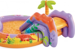 Pretvorite vrt u mali vodeni raj. Nafukavajuće vodeno središte INTEX kombinira plitki plićak, tobogan s podstavljenim dočekom i fontanu – dovoljno je priključiti vrtnu cijev i osvježenje je zajamčeno. Šareni dinosaurus motiv oduševit će djecu i potaknuti ih na aktivno kretanje.