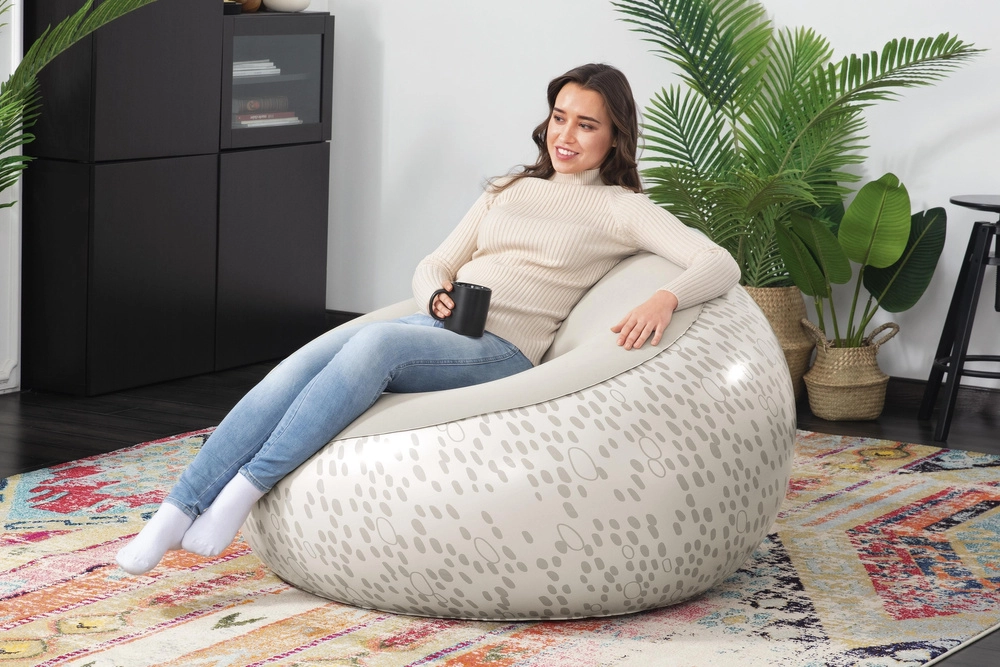 Bestway napuhavajuća fotelja idealno je rješenje za one koji cijene udobnost i funkcionalnost. Zahvaljujući modernom dizajnu i izdržljivoj coil beam konstrukciji, savršeno se uklapa u dom, ali i za boravak na otvorenom.