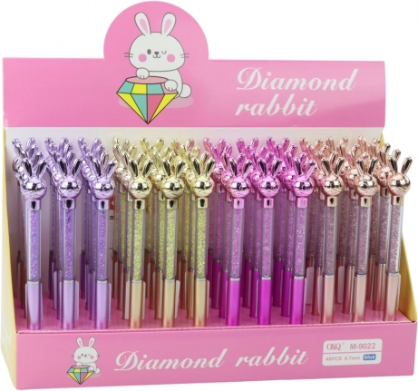 Zahvaljujući prozirnom tijelu ispunjenom sitnim kamenčićima, olovka pri pisanju stvara očaravajući blještavi efekt. Efektna figurica zečića na vrhu naglašava originalan izgled koji će se istaknuti na svakom radnom stolu.