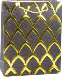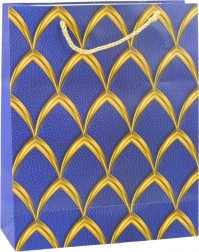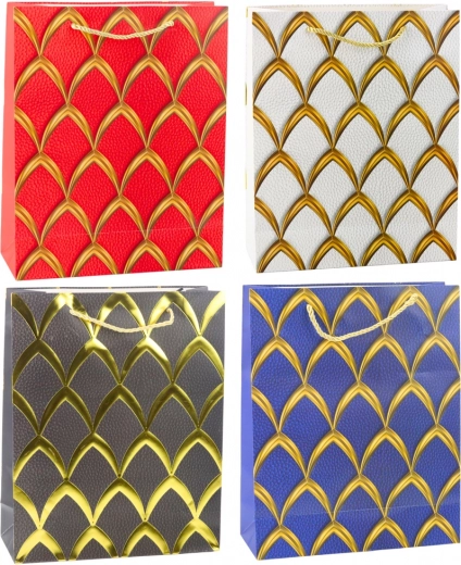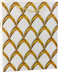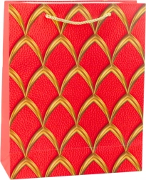 Elegantna poklon-vrećica s luksuznim zlatnim uzorkom, dostupna u crvenoj, bijeloj, crnoj i plavoj. Izrađena od kvalitetnog ukrasnog kartona sa špagastim ručkama za udobno nošenje. Idealna za rođendane, obljetnice, blagdane i svečane prigode.