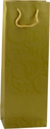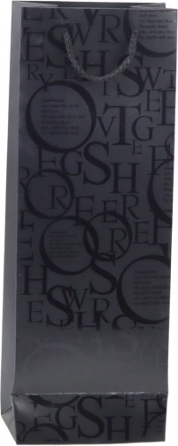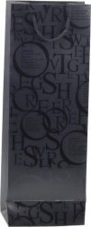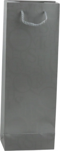Elegantna poklon-vrećica za bocu od kvalitetnog papira s minimalističkim dizajnom i reljefnim uzorkom slova. Ima čvrste pletene ručke od konopca za sigurno nošenje i prikladna je za vino, pjenušce i domaće limunade. Dostupna u 4 luksuzne boje: crna, srebrna, grafitna i zlatna.
