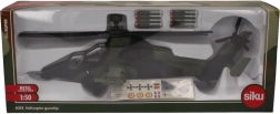 Realističan model borbenog helikoptera u mjerilu 1:50 marke SIKU oduševit će male i velike zaljubljenike u tehniku. Nudi metalno tijelo od tlačno lijevanih dijelova, pokretne rotore i funkcionalni lanser raketa s opružnim mehanizmom. Model je izveden u vojno zelenoj i crnoj boji, ne sadrži PVC i ispunjava međunarodne sigurnosne norme za igračke. Prikladno za djecu od 3 godine.