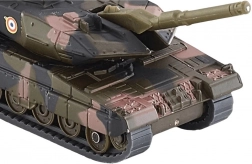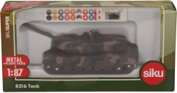 Vjerna replika borbenog tenka u mjerilu 1:87 brenda SIKU oduševit će male i velike ljubitelje tehnike. Nudi realistične detalje, metalnu i plastičnu izvedbu, pokretnu kupolu i top te glatko pomične gusjenice. Dio pakiranja je mini figurica vojnika i naljepnice za individualnu prilagodbu. Prikladno od 3 godine.
