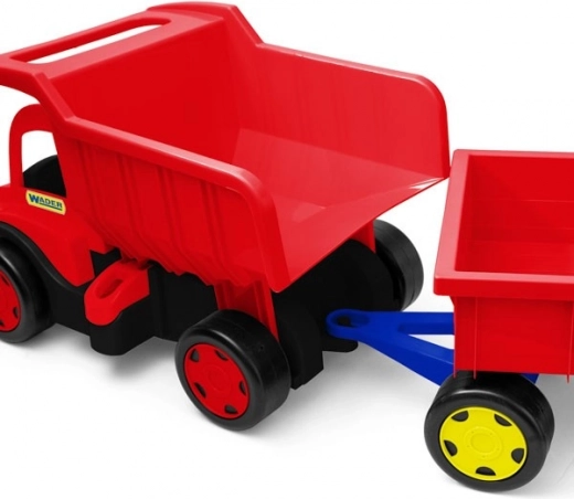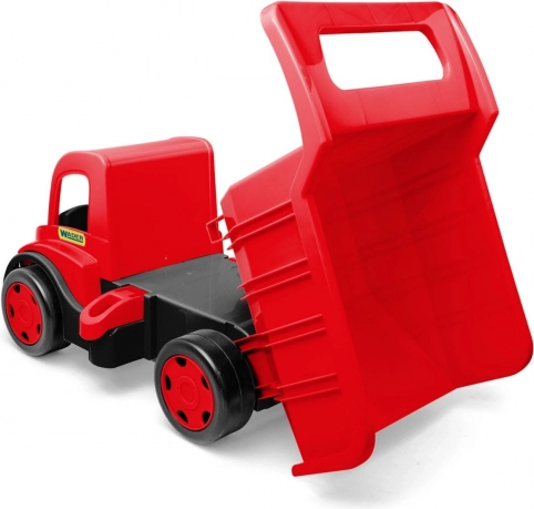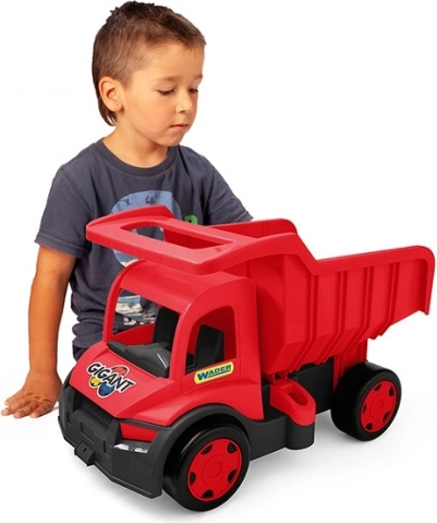 Otkrijte robusni crveni kiper GIGANT koji zahvaljujući duljini od 55 cm i čvrstoj konstrukciji podnosi puno tereta i maštovite igre. Otvoriva karoserija s udobnim rukohvatom olakšava utovar i istovar, dok kuke sprijeda i straga omogućuju vuču i spajanje dodatnog vozila ili prikolice.