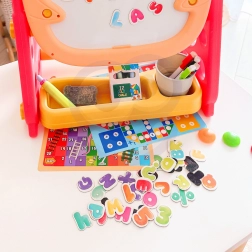 U kompletu je sve što djeci treba: magnetna abeceda i brojke, flomasteri, krede, spužvica, praktična polica i čašica za pribor te dvije društvene igre za zajedničku zabavu. Kompaktne dimenzije olakšavaju smještaj u dječjoj sobi.