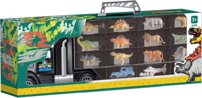 Otkrijte multifunkcionalni kamion koji je ujedno praktični kofer i zabavna stanica za izbacivanje. Dvostrana karoserija s prozirnim poklopcem prima ukupno 24 figurice ili autića, tako da svatko ima svoje mjesto i ništa se ne gubi. Set uključuje 6 dinosaura, 6 životinjica, mali autić i helikopter – sve spremno za trenutnu igru.