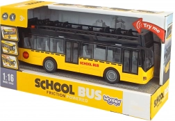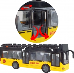 Ovaj model školskog autobusa predstavlja realistično dizajn s natpisom 'SCHOOL BUS' i otvorenim prozorima. Odličan za upoznavanje dizajna vozila.