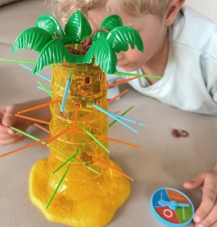 U ovoj sjajnoj igri marke Woopie ubacujete štapiće u rupe na palmi i bacate na njih majmunčiće. Svaki potez okrećete kotačić i strelica određuje koji štapić morate izvući. Cilj je zadržati majmunčiće što duže na palmi ine prouzročiti njihov pad. Pobjednik je onaj tko sruši najmanje majmunčića.