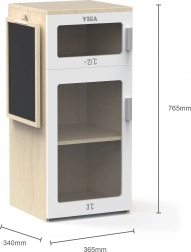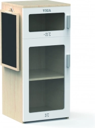 Drvena hladnjak Viga je idealan dodatak dječjem kutku za igru, koji razvija maštu i kreativnost djece. Hladnjak ima dvije komore - zamrzivač i hladnjak - a na vratima je ploča za pisanje ili crtanje kredom.