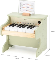 Naš dječji klavir PolarB ima tipke označene raznobojnim slovima, što olakšava učenje nota i sviranje jednostavnih pjesama. U paketu dolazi nota popularne pjesmice "Twinkle Twinkle Little Star," tako da dijete može odmah započeti svoju glazbenu avanturu. Klavir je izrađen od visokokvalitetnog drveta, što jamči njegovu izdržljivost i sigurnost. Suptilne pastelne boje i decentni ukrasi čine klavir prekrasnim dodatkom svakog dječjeg prostora.