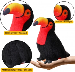 Plišani tukan visine 20 cm vjerno prikazuje karakteristično crno perje s crvenim akcentima. Izrađeno od mekog i ugodnog materijala.