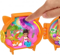 Otkrijte svijet džepne zabave s prijenosnim setom Polly Pocket! Preslatka kompaktna kutijica u obliku životinje otvara se u mini svijet pun mašte, sadrži lutkicu, 2 životinjske figurice (jednu s mekanom krznatom teksturom) i češljić skriven u gornjem dijelu. Zahvaljujući kopčama za ruksak te mogućnosti međusobnog spajanja i slaganja setova, djeca uživaju u kreativnoj igri kod kuće i na putu.