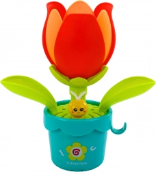 Prilikom punjenja priložene kante i zalijevanja cvijeta, latice cvijeta se postepeno otvaraju i otkrivaju simpatično žuto stvorenje. Ovaj efektni trenutak zasigurno će izmamiti osmijeh na lice svakog djeteta i potaknuti ga na daljnju igru. Ova igračka ne samo da pruža sjajnu zabavu, već također razvija koordinaciju ruke i oka, strpljenje i razumijevanje uzročnih odnosa.