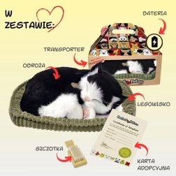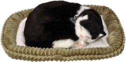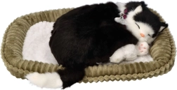 Ova realistično izrađena plišana mačkica u crno-bijeloj varijanti mirno spava na svojem krevetiću i nježno „diše”, stvarajući ugodnu atmosferu i dojam prisutnosti pravog ljubimca. Zahvaljujući detaljnoj izradi, ogrlici s pločicom i mekom krznu, odličan je poklon za djecu od 3 godine naviše i ljubitelje mačaka.