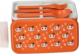 narančasta kutija za ručak s mačkicom sa žlicom i vilicom