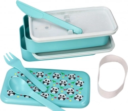 Slatka kutija za užinu s motivom pande i volumenom 1,2 l idealna je za ručkove za školu, posao i putovanja. Nudi dva odvojena kata, praktičan pribor uključujući vilicu, nož i žlicu te sigurno pričvršćivanje elastičnom trakom. Prikladno za zamrzivač i za zagrijavanje u mikrovalnoj pećnici bez poklopca (maks. 100 °C).