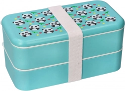 Stilizirana dvoslojna bento kutija u tirkiznoj boji s razigranim motivom pande održat će vašu hranu svježom i odvojenom. Zahvaljujući kompaktnim dimenzijama 20 × 10,6 × 10 cm stane u školsku torbu i poslovnu torbicu, a elastična traka pouzdano drži sve na okupu.
