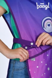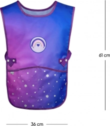 Ova šarena dječja pregača s prijelazom plave i ljubičaste te slatkim srcem idealna je za likovni, radionice i kućno stvaranje. Zahvaljujući izdržljivom perivom materijalu lako se održava i dugo traje.