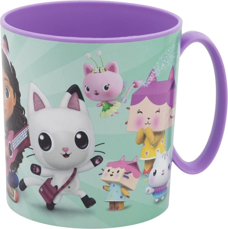 Praktična plastična šalica zapremnine 390 ml s motivom Gabinin čarobni kućica odlična je za svakodnevno pijenje kod kuće i na putu. Lagana je, otporna na slučajne padove, bez BPA i može se koristiti u mikrovalnoj pećnici. Jednostavno se čisti, no nije prikladna za perilicu posuđa.